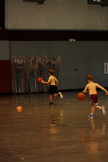 Lyndon had basketball camp Monday-Thursday of last week. He was suppose to also have baseball camp, but the coach's daughter made her entrance into the world a little early.