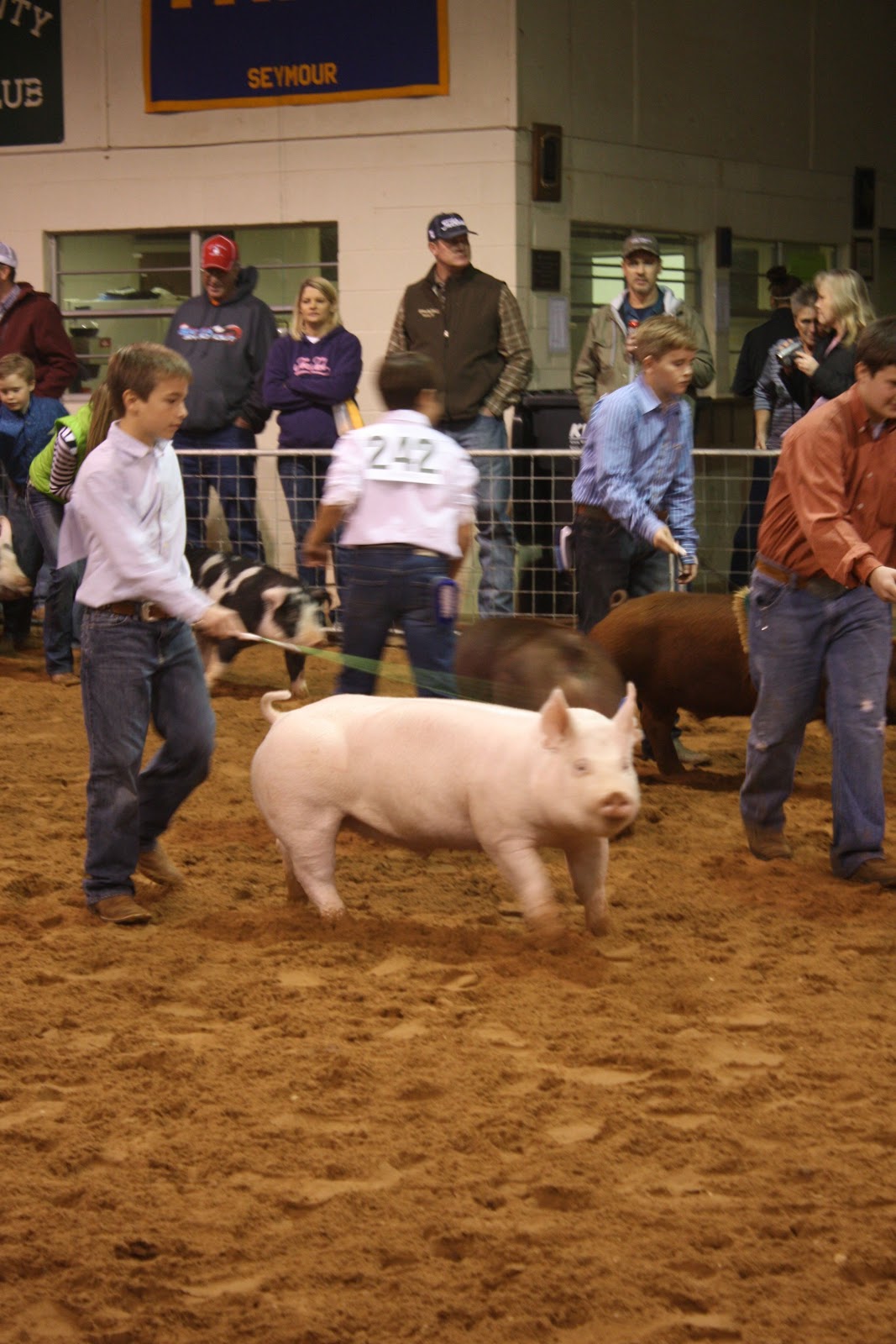 Lyndon showed 2 pigs in the BCJLS for 2013. Jack was the 1st pig to show. Lyndon did a great job with him and learned various showmanship skills since last year. Jack was 3rd in his class of spots.